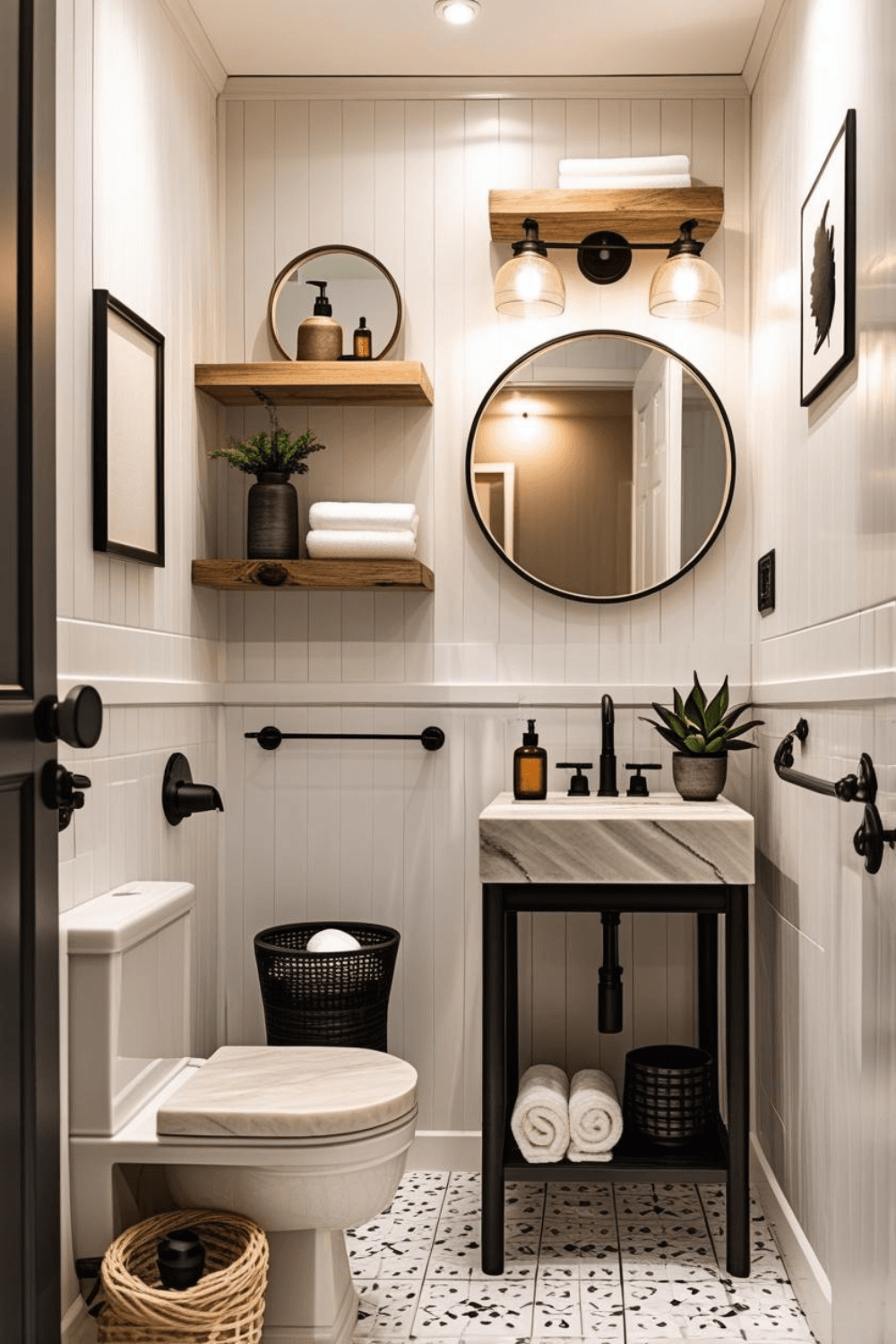 Farmhouse Bathroom Design Ideas with Black Fixtures