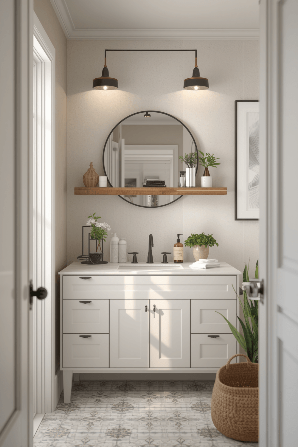 Transforming your bathroom doesn’t have to be expensive. A budget-friendly farmhouse makeover can be achieved with simple changes like adding wooden shelves, updating lighting, and using neutral decor. Small details like a round mirror, woven baskets, and soft towels can instantly elevate the space. This style focuses on warmth and simplicity, making it perfect for affordable renovations. With thoughtful planning, you can create a Pinterest-worthy bathroom without spending too much, while still achieving a modern and cozy look.