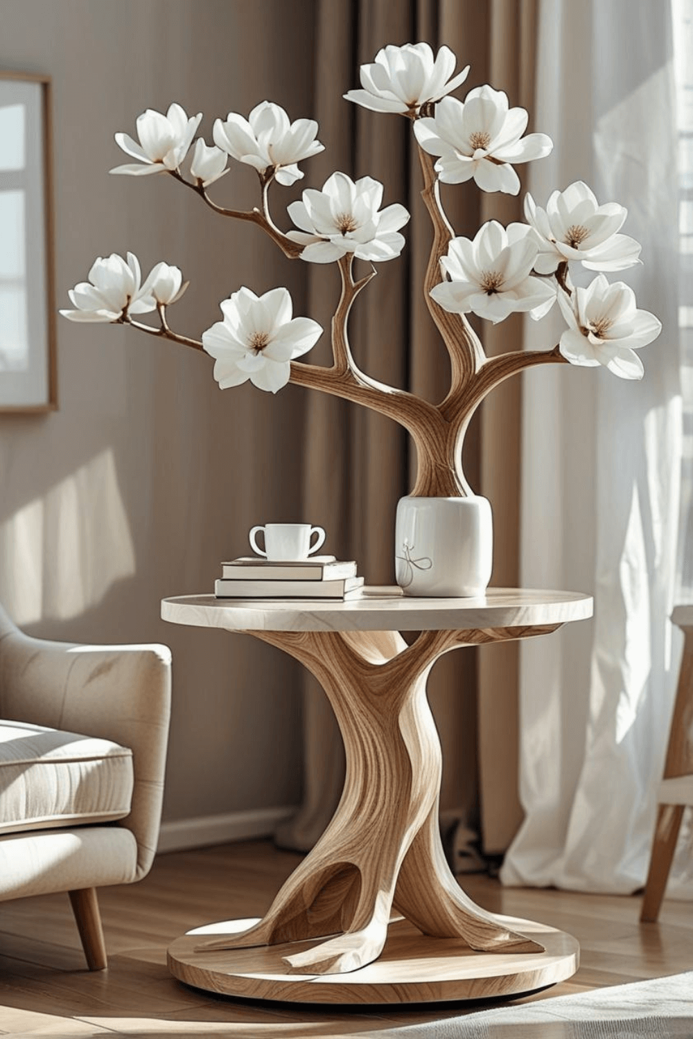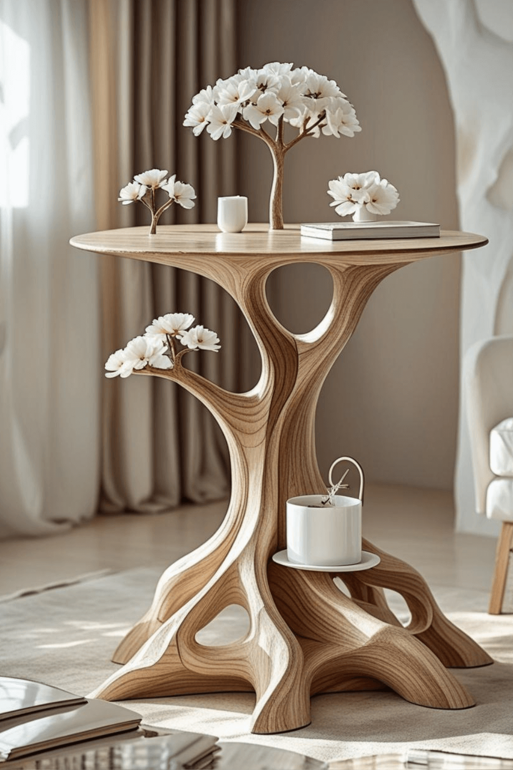 Small apartments often require furniture that combines beauty with practicality. A tree inspired side table offers both by providing space for books, coffee, and small accessories. When paired with neutral interiors and natural textures, this type of furniture becomes a focal point that enhances the overall room design.