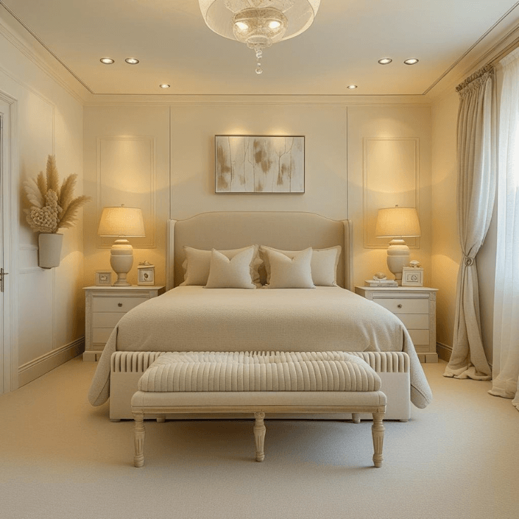 A monochrome cream bedroom design feels timeless because it avoids trends. By focusing on soft fabrics, balanced lighting, and cohesive tones, the space remains elegant year after year. Simplicity becomes the statement.