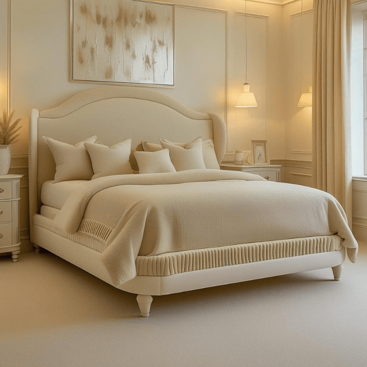 Choosing fabric in a warm cream tone instead of stark white keeps the atmosphere inviting. Upholstery also absorbs light slightly, which adds softness. In warm cream bedroom design ideas, a fabric bed frame often feels more elegant than wood or metal.